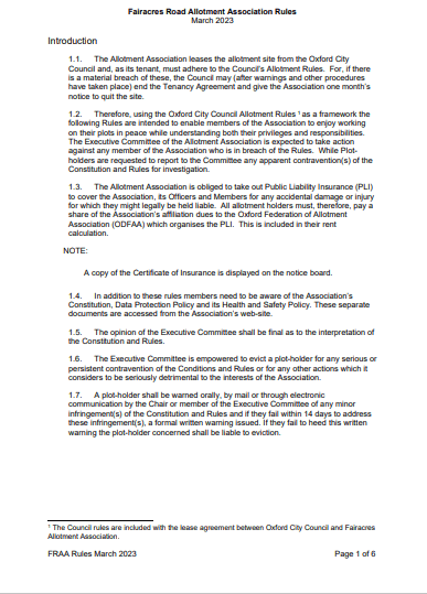 FRAA Rules Fairacres Road Allotment Association Rules Share this: Click to share on X (Opens in new window) X Click to share on Facebook (Opens in new window) Facebook Like Loading...